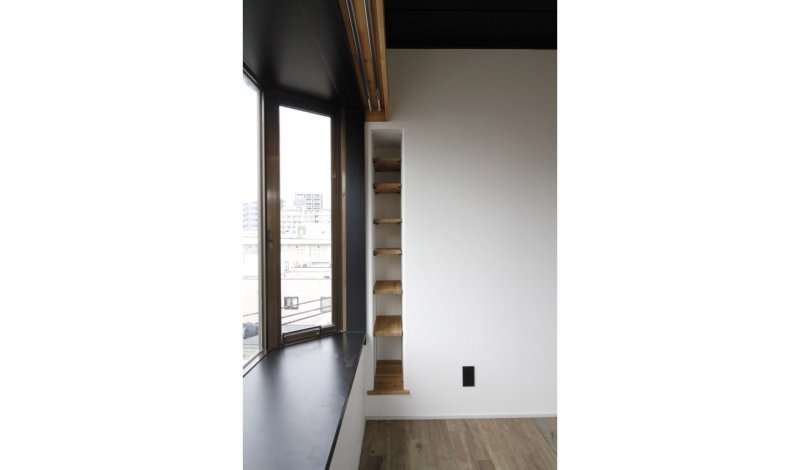 出窓の横にはちょっとしたものが入れられるラック付き。