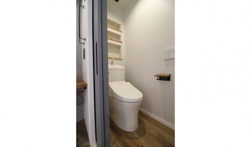 デッドスペースも、小物やタオルが置ける棚として有効活用!