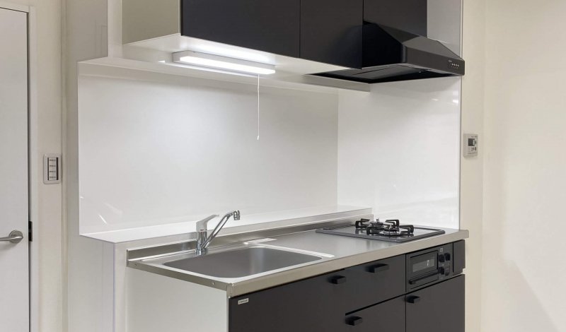白のクロスと木目の床にアクセントとして黒をチョイス