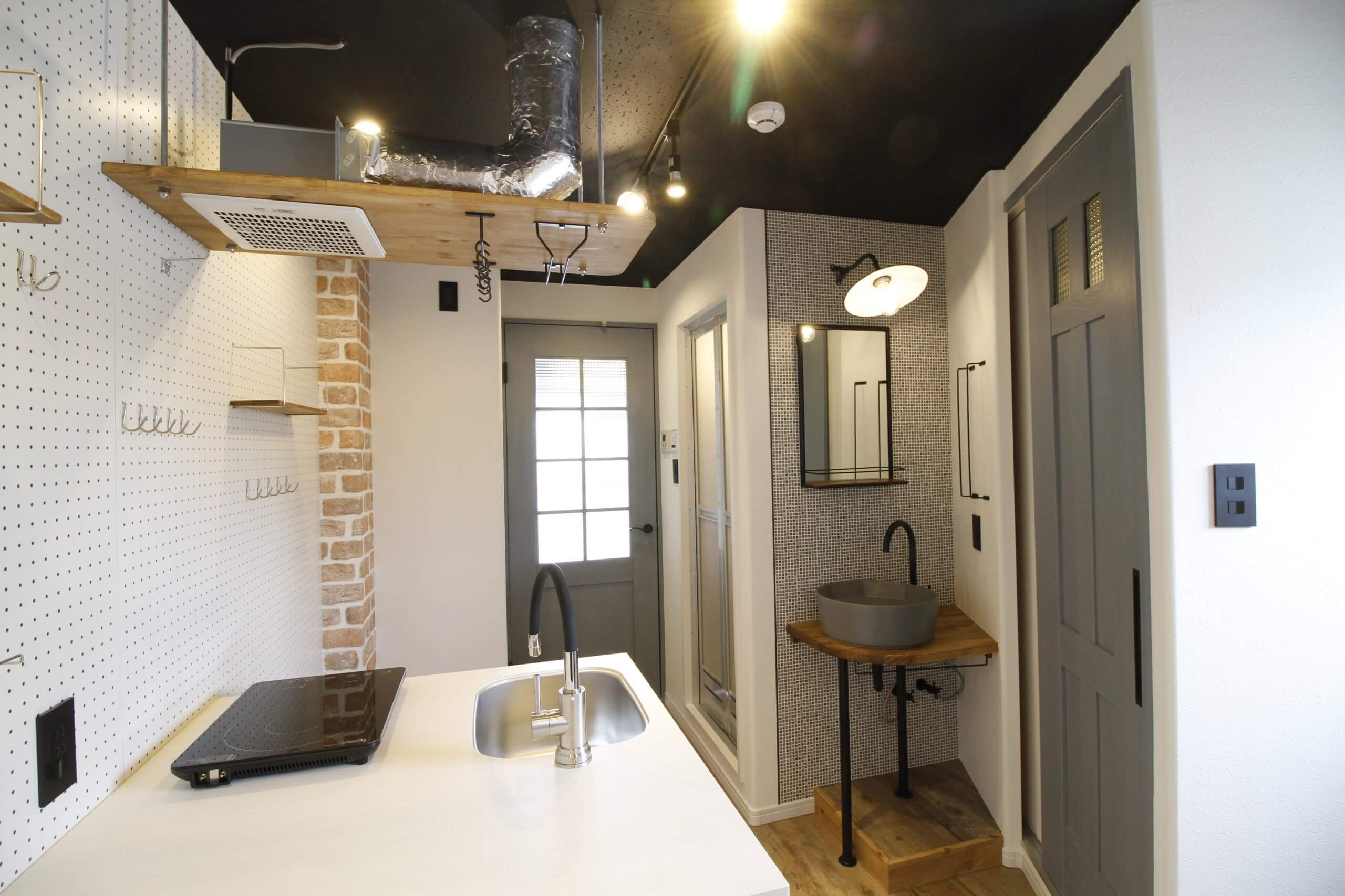 ブロック×ステンレスの開放的なキッチン